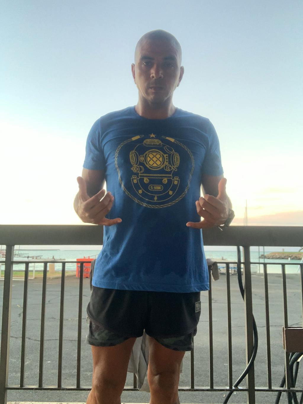 Project Aware Iconic - blue t-shirt with gold diver helmet logo on front